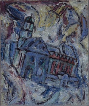 Von Dorothee Baer-Bogenschütz Eine Architektur tanzt. Wo ist Halt? Gefahrvoll schwankt der kriegsversehrte Turm. Die Säulenlaterne der Frankfurter Paulskirche scheint durchs aufgewühlte Farbenmeer zu taumeln. Ihr ovaler Rumpf vibriert im Strudel der Malstrukturen. Unruhe hat die steinernen Züge erfasst. Die Mainsandstein-Röte entweicht aus ihnen, ihre Miene wird fahl. Alle Gewissheiten schwinden. Das Bauwerk zeichnen stürmische […]